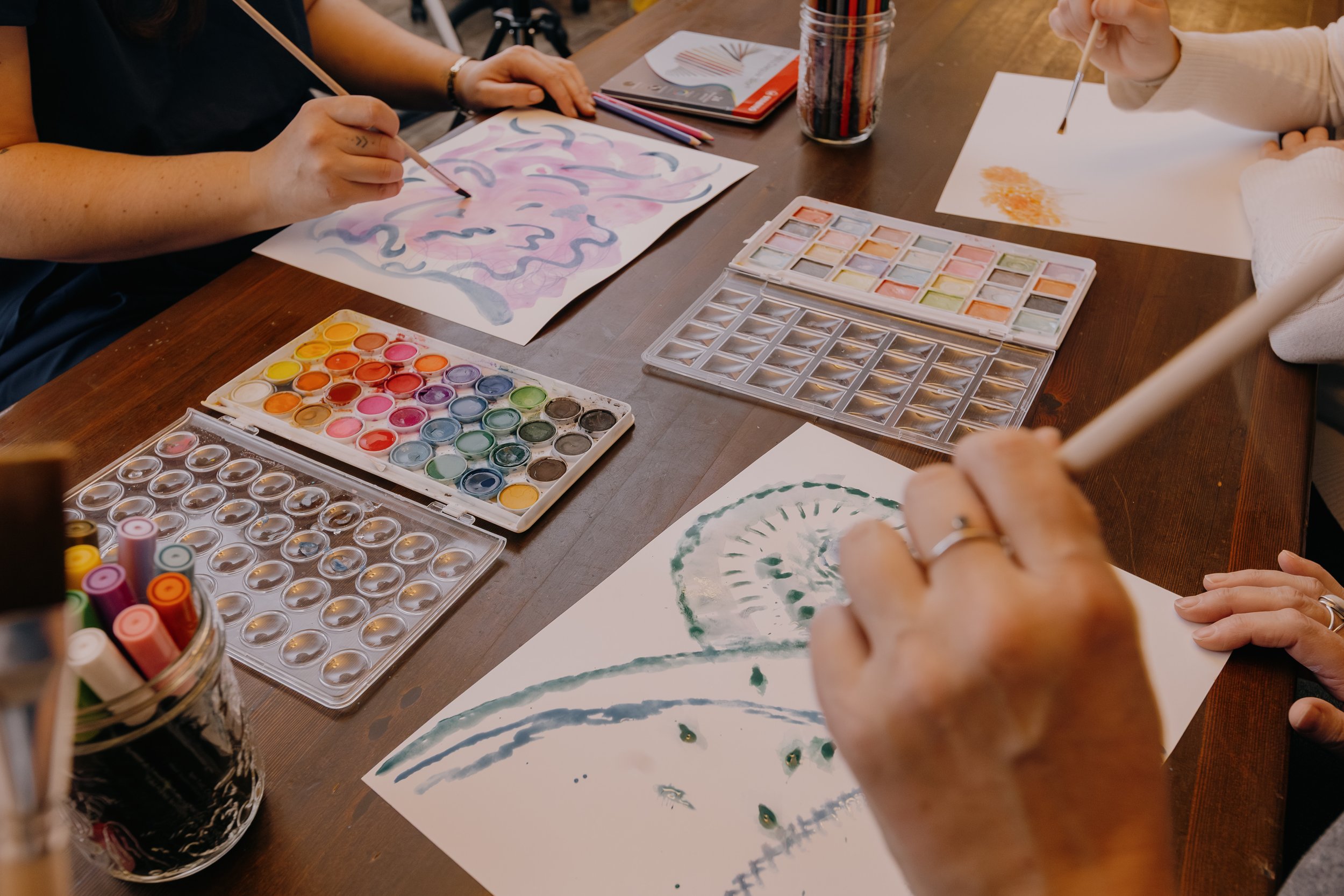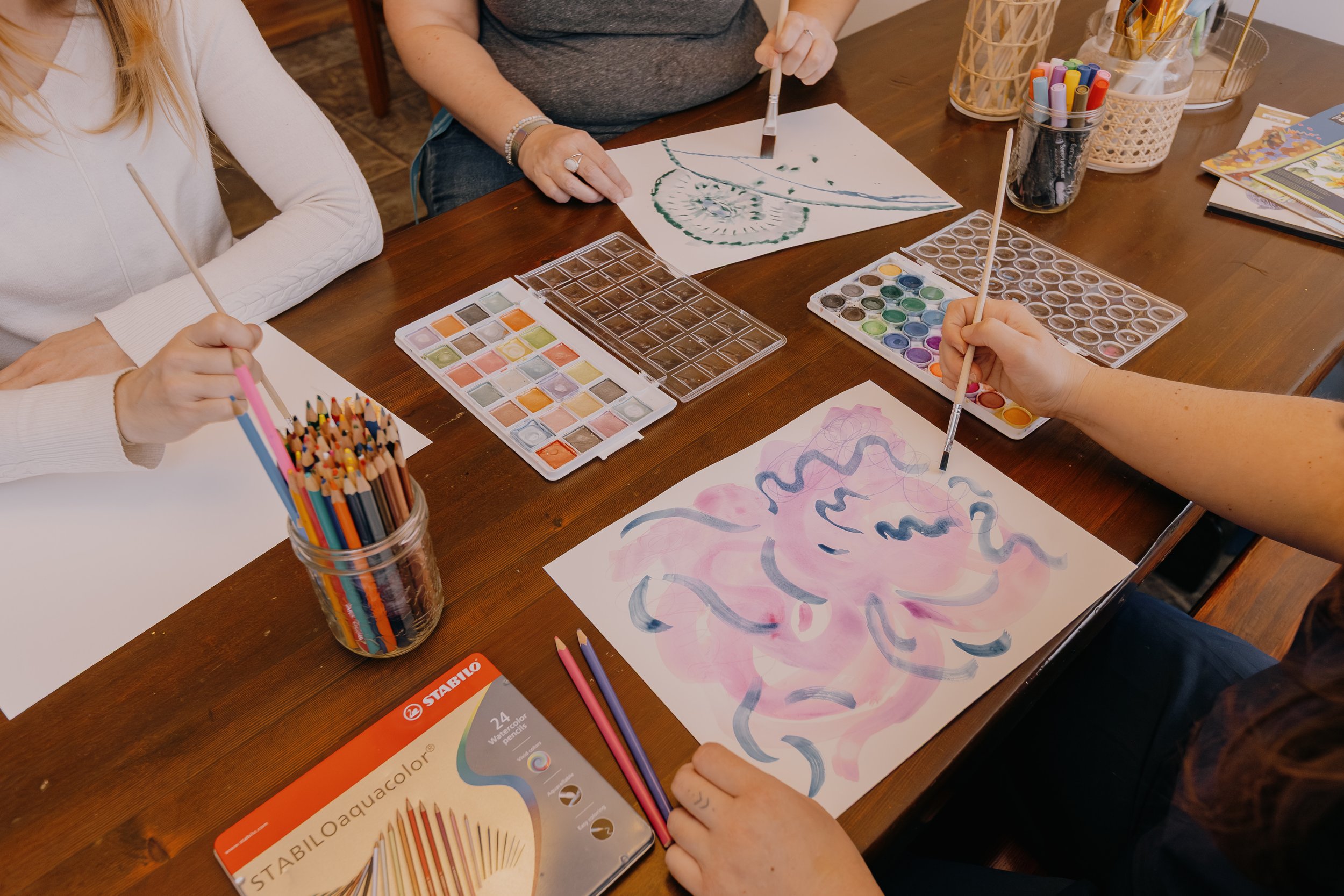 In group art therapy, you’ll explore your inner world through creative expression while held within a supportive community. Using art-making, breathwork, gentle movement, and shared reflection, groups offer space for insight, connection, and nervous system regulation.